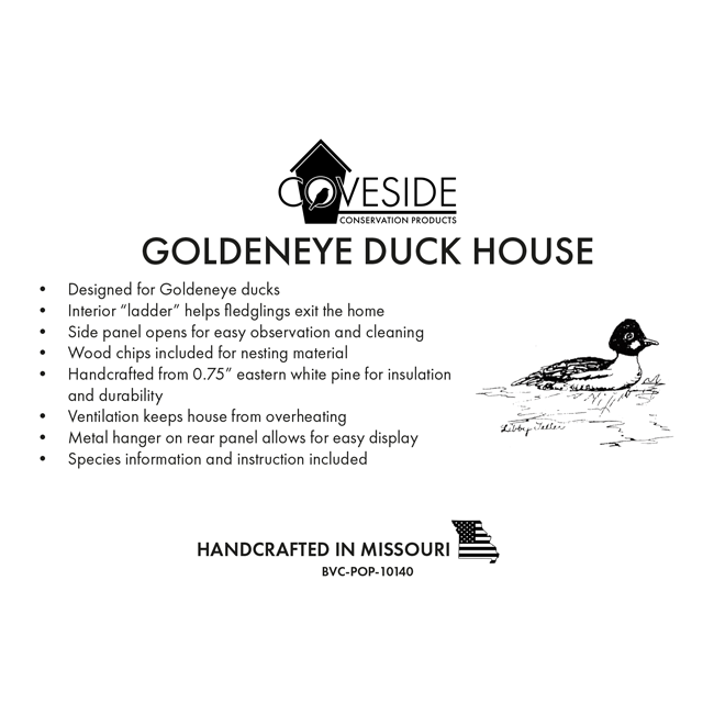 Provide shelter to dramatic waterfowl when you add this Coveside Unassembled Goldeneye Duck House to your waters edge.