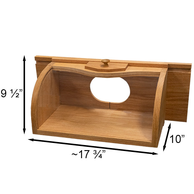 Dimensions: ~17.75"L x 10"W x 9.5"H feeder, 12"L x 9"W x 0.75"H side panels each