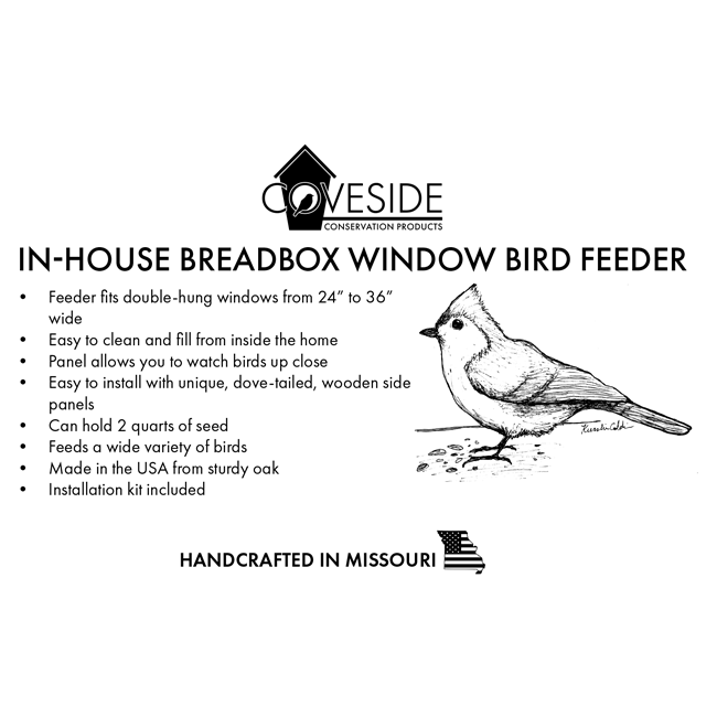 Note: This case pack contains 2 of the Coveside In-House Breadbox Window Bird Feeders.