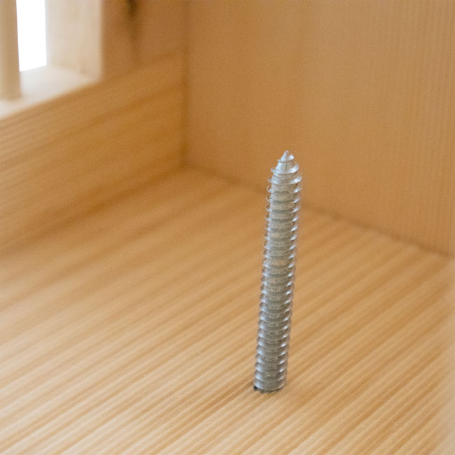 - Seven vertical dowel rods comprise the "bars" of this squirrel cell