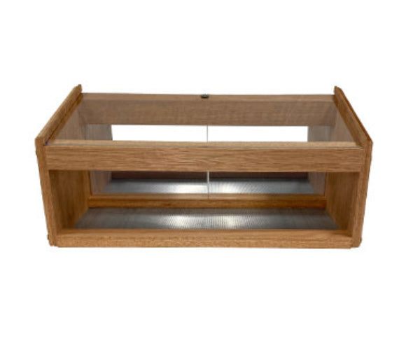 Give yourself a close-up view of birds as they dine with the Coveside Windowsill Bird Feeder with Mirrored Back. This quaint, mahogany unit is designed for your windowsill, allowing you a front row seat to enjoy viewing birds as they feed. Two included wooden dowels insert into openings on the sides of the feeders, and internal springs keep them in place for simple installation in windows from 22" to 38" wide. A downward-angled acrylic top shields the perforated metal seed tray, keeping the feed protected from rain and creating a place for birds to comfortably graze. A pair of additional acrylic panels comprises the back of the unit, and these have a mirrored exterior finish, so the birds won't be able to spot you even as you watch them. These two panels slide open in the center to allow for refilling and maintenance. The reservoir holds a plentiful 1.1 quarts of seed, offering a fancy feast for curious birds. The metal screen base also aids in water drainage, and the mahogany frame offers a pastoral look to the feeder. Get a spectacular view of birds as they enjoy dining in this Windowsill Bird Feeder with Mirrored Back. Made in the USA.