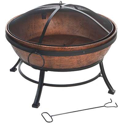 Create an elegant focal point on your patio using this DeckMate Steel Avondale Outdoor Fire Bowl with Screen. A copper finish on the significant, 29" diameter bowl brings a timeless look to your setting, and black accents further the classic motif. Dual, steel support rings and four, 8.5" tall legs elevate this striking unit from the ground, and these pieces flare outward for a wonderful effect. A matching, black ring attaches to the exterior of the bowl for added detail and a unified look, and two small circles on it mimic handles. Cover the basin with the included steel mesh lid, to keep the flames nicely contained, and use the top loop handle to remove the lid for maintenance. Black accents peek through the high temperature, copper colored paint, bringing an aged look and classic color scheme to any setting, and the steel construction of the piece provides durability. The extra large size makes the item a fantastic outdoor focal point, perfect as a gathering spot for neighborhood parties. Celebrate the beauty of fire on your patio using this Steel Avondale Outdoor Fire Bowl with Screen. Assembly required.