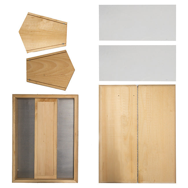 Contents: 4 precut pine panels, 2 plexiglass panels, hardware
