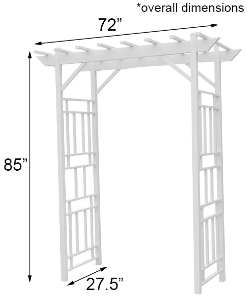 Adorn your garden with the Dura-Trel Wellington Arbor. The detailed geometric design on the side panels and flat slat roof add a modern feel to your garden. The white vinyl construction brightens any surrounding while offering a weatherproof exterior. When coupled with climbing vines along the sides of the item, it creates a dynamic centerpiece for any yard or garden.