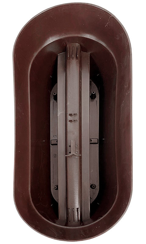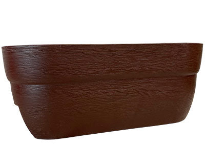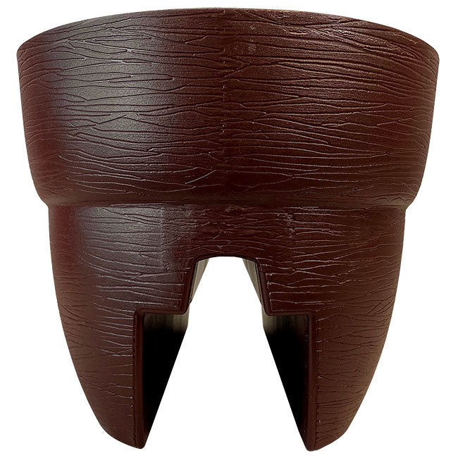Uniquely display a few plants on your deck rail using this Emsco Brown Bloomers Deck Rail Planter. This fun, resin unit straddles your deck railing, rather than affixing to the wall or edge with brackets, creating a remarkable plant showcase in moments. A faux wood grain on the exterior lends a natural look to the piece, and the oval shape enhances your flowers or herbs easily. The internal, raised part spans round or square deck rails from 1" to 4", and two included plastic stabilizer fasteners aid in securing the piece. The narrow base can also sit directly on a 6" wide, rectangular rail, and a horizontal line demarcating the wider top from this base brings additional angles and style to the piece. Upright cones on the lower sections of the unit sport open tops, allowing both air flow and drainage, while the resin construction offers durability. Display flowers directly on your deck railing in this Brown Bloomers Deck Rail Planter. Made in the USA.