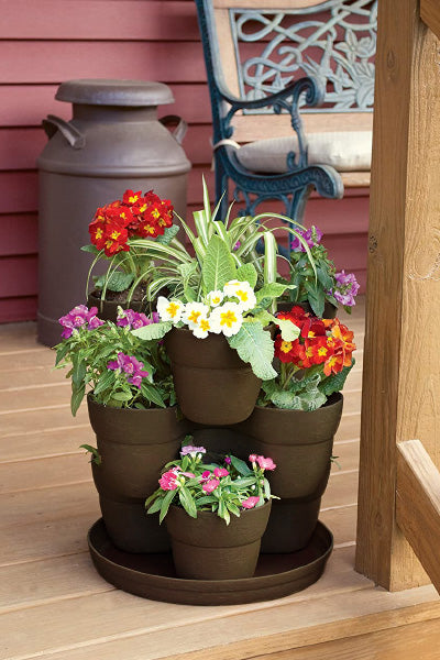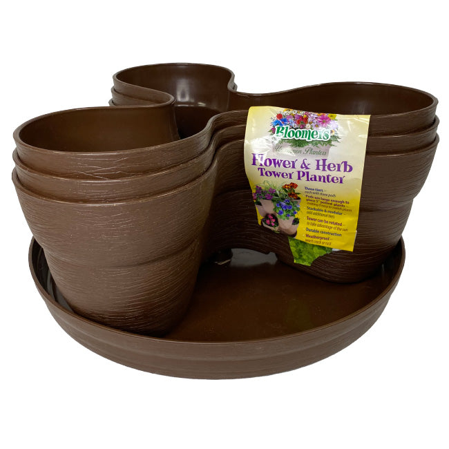 Emsco Bloomers Flower Tower Stackable Planters, Brown, 12"L