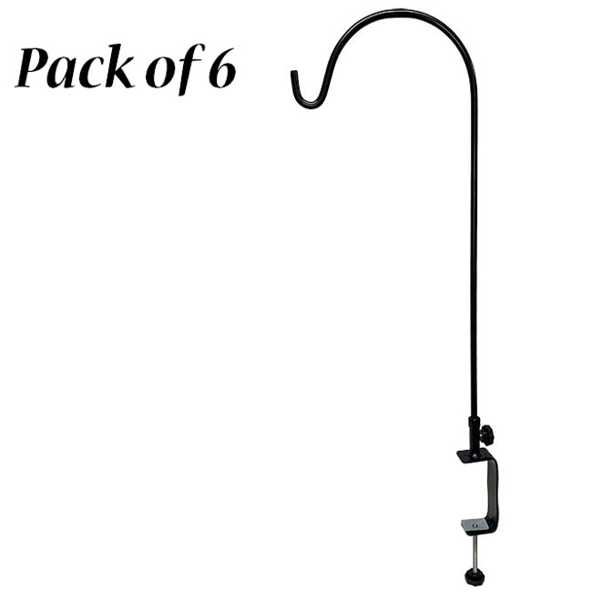 Suspend an assortment of bird feeders or small spinners from a deck or patio using this 6 Pack of Erva Black Deck Rail Hangers with Extra Large Clamps.