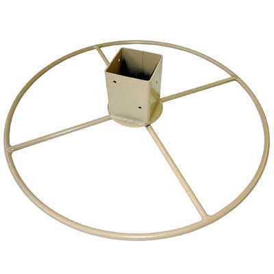 Showcase your favorite post mounted bird feeder on your deck using the Erva Patio Base for 4 x 4 Post. This generous, durable base perfectly supports your existing, wooden 4 x 4 post, for a great new display on your front porch. The 25.5" diameter, tubular steel base rests on a level surface, and four cross bars within this circle offer strength. A 5.5" diameter disc sits in the center of this base, and its square collar easily accommodates your wooden 4 x 4 post (not included). Included, heavy duty screws keep your post in place, and the tan, powder coated finish throughout the piece meshes with the outdoors. Add a post mounted item to your patio or deck with help from this Patio Base for 4 x 4 Post. Made in the USA.