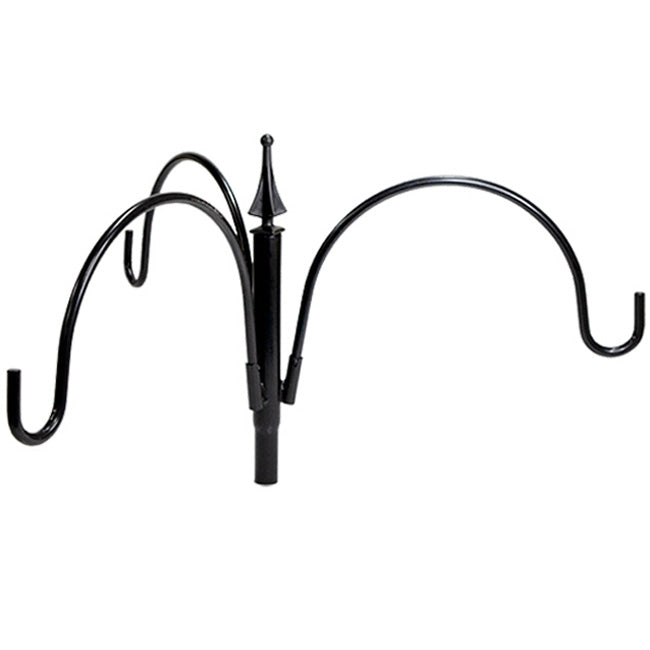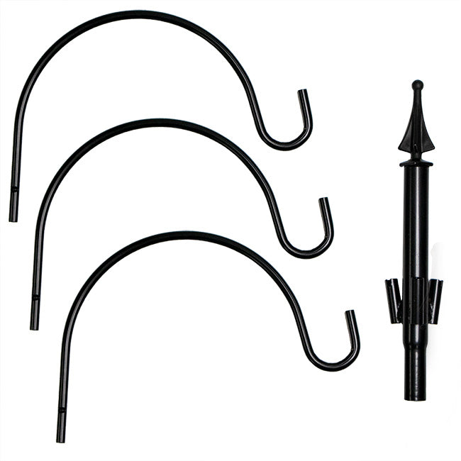- Traditional, black hanger sports 3 arched arms to allow a vibrant display atop your garden pole.