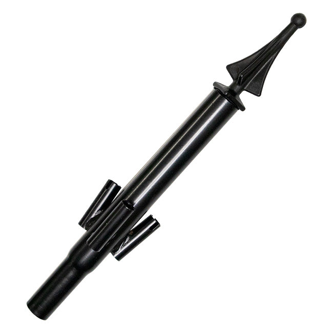- Tubular steel hub slides onto compatible pole, while a decorative plastic finial tops the piece.