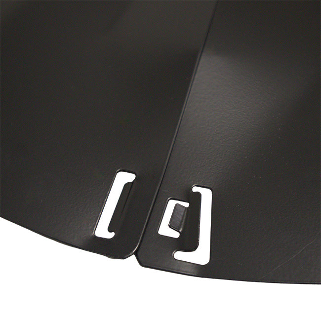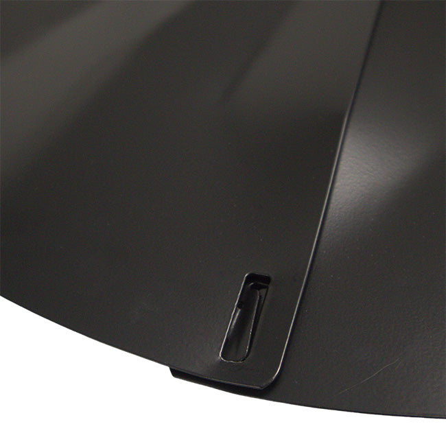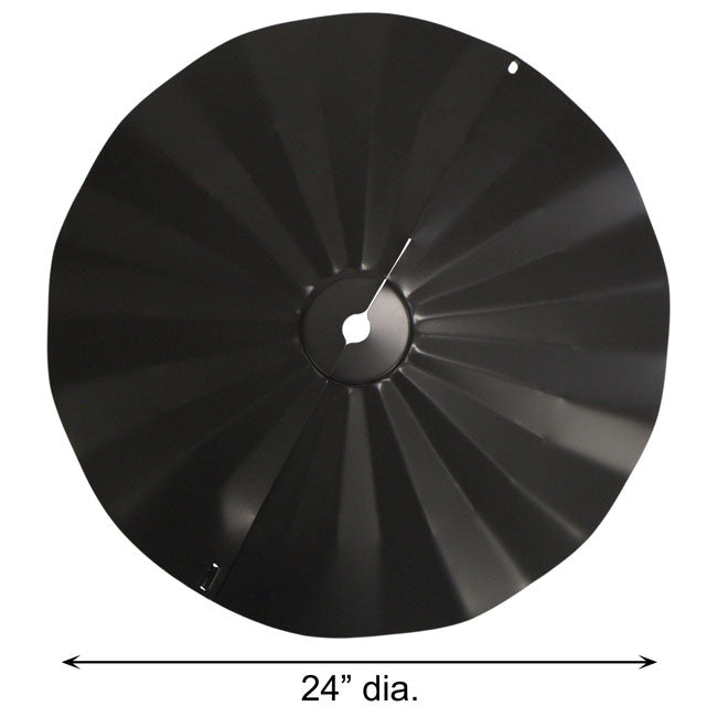 Provide a handy way to stop squirrels from accessing your birding accessories with this Erva Black Wrap-Around Pole Mounted Squirrel Baffle. This generous, disc shaped baffle prevents marauding squirrels from climbing your birding pole and invading your bird houses or feeders, giving you a simple method for keeping backyard birds safe and their feeding stations unspoiled. The powder-coated, galvanized steel body makes a staunch unit that will not be chewed or destroyed by rodents, while the black finish and wavy design add an interesting visual element to this striking piece. The wrap-around design allows you to easily install this baffle around a 0.5" to 1" diameter pole, with a locking tab on one edge of the unit connecting to complete the substantial, 24" diameter circle. An included, metal coupler keeps the item in place on your pole, ensuring stability; the solid, metal construction provides reliable support and eliminates the threat of damage from animal chewing. The oval opening in the center of the baffle perfectly surrounds your existing pole, and the locking tab and mounting collar help complete the easy setup. Make sure your bird feeders and houses remain guarded and safe from unwanted squirrel activity with this Black Wrap-Around Pole Mounted Squirrel Baffle. Made in the USA.
