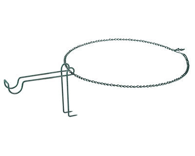 Add a unique hanger to your small to medium tree without harming it using this Esschert Design Green Adjustable Metal Tree Hook. This combination includes a 47" long, metal chain as well as a hanging arm, forming an innovative outdoor accent. The chain handily encircles your tree trunk, and slides through the loops on the back of the hanging arm to support it. The steel rods extend 7" outward and culminate in an upward curve, holding hanging items up to 12" in diameter easily. These rods also continue downward at the back of the hanger, helping brace against the tree without damaging it. The green finish throughout the piece meshes with the outdoors, while its metal and steel construction remains durable. Safely hang a bird feeder or lantern from your tree using this Green Adjustable Metal Tree Hook.