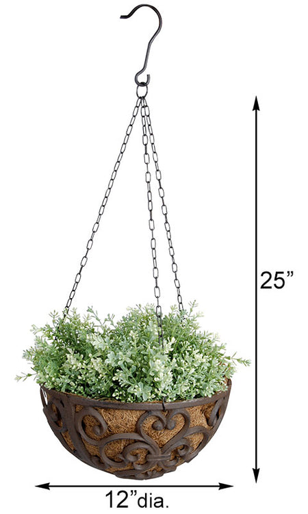 Esschert Design Cast Iron Hanging Basket with Liner, 12" dia