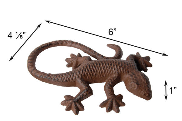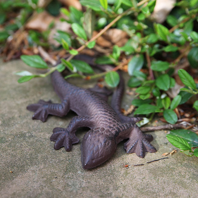 Embellish your garden with a fun and decorative reptile using this Esschert Design Antique Brown Cast Iron Lizard Statue. This sensational, realistic depiction of a lizard is individually hand cast to ensure age-old craftsmanship and quality. With a deep, earthy brown hue and amazing texture, this striking reptile representation will beautifully add an additional bit of wildlife admiration to your natural garden. This lizard's 6" length makes it substantial enough to stand out while not imposing among your existing landscaping, making it a fabulous choice to adorn your garden. Demonstrate your whimsical love for reptiles and nature with this Antique Brown Cast Iron Lizard Statue.
