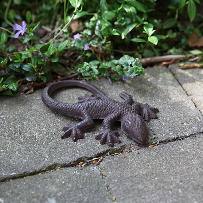 Esschert Design Cast Iron Lizard Statue, Antique Brown