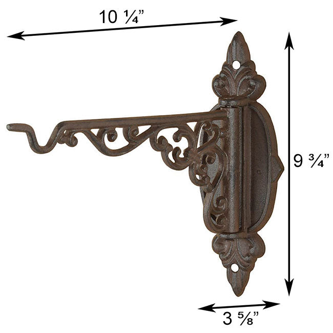 Showcase your existing hanging basket or wind chime with a classic and elegant hanger using this Esschert Design Antique Brown Cast Iron Long Swivel Hook. Lasting materials, timeless scrollwork, and a deep brown hue combine for a fantastic accent, perfect for displaying a hanging item. A generous, cast iron back plate affixes to a wall easily thanks to predrilled holes for screws (not included), and supports the ornate, swiveling arm. The slight downward depression at the end of this extended arm accommodates items up to 18" in diameter, and its unique, swiveling mount enables you to move your plant or bird feeder to just the right spot. This design offers plenty of versatility for maintaining your hanging accent, and the scrollwork detailing enhances its classic look. Crafted from sturdy, cast iron, this bracket will remain usable and lovely for several seasons, and its straightforward installation makes placement simple. Hang a fun garden adornment from a wall or post easily with this Antique Brown Cast Iron Long Swivel Hook.