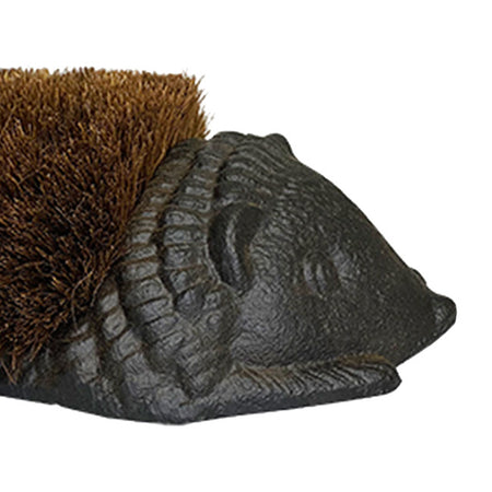 Place a watchful and whimsical figure at your front door using this Esschert Design Cast Iron Small Hedgehog Boot Brush. This delightful accent subtly requests that visitors wipe their shoes prior to entering your home, providing a 7.5" long brush on its back for them to do so. A detailed face with large eyes, flattened ears, and slightly outstretched legs lends a fun look and bit of personality to the item, and the deep gray tone on this section offsets the dark brown bristles. The cast iron frame provides durability and strength, and the wide, flat base makes it easy to rest this figure on a level surface next to your door. Charmingly invite anyone visiting your home to clean their shoes using this Cast Iron Small Hedgehog Boot Brush.