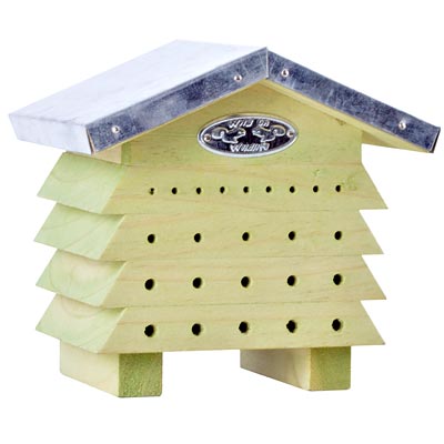 Help a few different bee species find a wonderful home with this Esschert Design Large Bee House. Many bees, including mason, horn-faced, and orchard bees, are quite mild mannered and solitary, and also provide excellent pollination in your garden. These bees tend to nest in holes, and this home offers a bevy of locations for them. The varied sizes of openings provide appropriate housing for a few different species, while the pine body enhances the natural appeal. The pitched roof protects the openings from the elements, and its metal top adds a bit of design and style to the unit. A hanger on the back of the piece allows you to display it on a wall or tree, while two legs enable it to rest on a level surface for a different look. The wood construction will certainly last for several seasons, and the unique shape brings a charming hint to your garden. Invite wonderful, pollinating bees into your backyard with this Large Bee House.