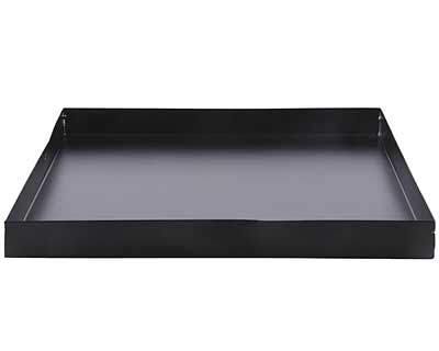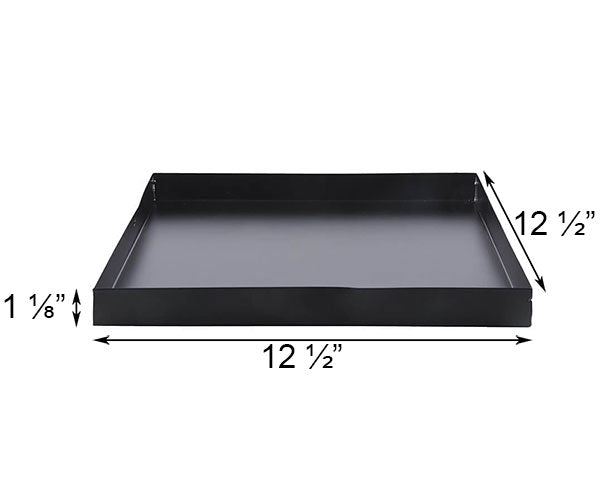 Protect the area beneath your existing, square fire bowl from damage using this Esschert Design Square Bottom Plate for Square Fire Basket. This classic, 12.5" square, steel plate handily holds the base of fire baskets up to 12" in length and width, and its black tone meshes with your setting easily. A 1.125" lip on the unit aids in keeping ash corralled, streamlining cleaning and maintenance. The plate also helps capture any flying embers, and the low profile keeps your fire visible from a distance. Keep your deck or patio safe from flames with help from this Square Bottom Plate for Square Fire Basket.