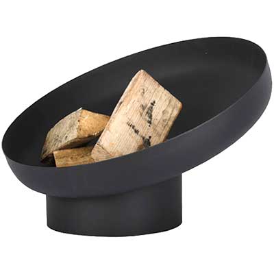 Celebrate bold shape and beautiful fire in your backyard with this Esschert Design Steel Sloping Fire Bowl. The generous, round bowl lends a traditional hint to the unit, while resting on an angled base for a striking effect. This adds a modern feel to the piece, furthered by the black, heat resistant paint. Place fire logs in this generous bowl to create a fantastic, outdoor gathering spot. A small hole near the bottom of the bowl allows air to circulate all around the logs, and the attached, 12.5" diameter base elevates the unit. This footer is designed to rest on a level, fireproof surface, and the steel construction of the piece remains durable for many seasons. Showcase fire in a new and contemporary way using this Steel Sloping Fire Bowl.