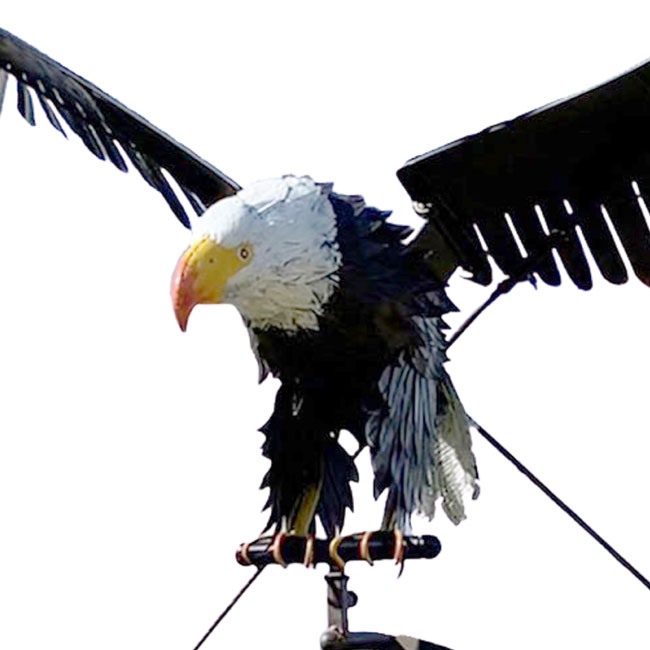 - Eye-catching, all metal topper evokes a familiar bald eagle with an expansive wingspan