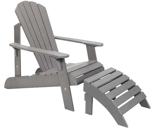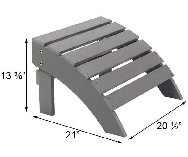 Complete the look of your existing patio set while providing a place to rest your feet with this Gardenature Grey Adirondack Footstool. This robust, recycled plastic accent is made to perfectly complement your existing Gardenature Grey Adirondack Chair (not included), aligning with its seat edge and matching its angle. The recycled plastic slats and side supports curve downward, forming a convenient place to rest your legs or feet. Dual legs and a horizontal support beam help keep the piece stable on your patio or in your lawn, while its grey finish adds an elegant look to any setting. The weather resistant hardware and maintenance free, recycled plastic body add durability, and the ergonomic shape keeps your legs at just the right angle. Deeply relax and rest your feet with this Grey Adirondack Footstool. Assembly required. Five year warranty.
