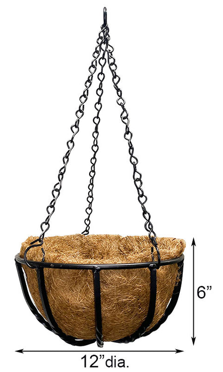 Gardman Blacksmith Hanging Basket with Coco Liner, 12" dia.
