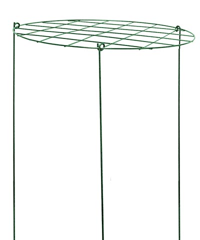 Ensure your flowers grow beautifully and are healthy using the Gardman Grow-Through Plant Support. Adding a support above your shrub or flower keeps the stems and heads upright, helping strengthen the root system. The 20" diameter top ring is perfect for medium to large flowers or shrubs, and the 3.25" square openings accommodate large blooms easily. Attach the three, 30" long legs to the ring to install it above your plant in moments, and guide its stems through the gridwork for maximum support. The steel construction ensures strength, and the green, plastic coated finish meshes with your foliage. Keep your garden plants healthy and upright with this Grow-Through Plant Support.