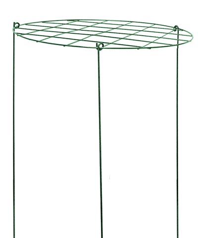 Ensure your flowers grow beautifully and remain upright using the Gardman Grow-Through Plant Support. Adding a support above your shrub or flower keeps the stems and heads upright, helping strengthen the plant's root system. This item's 12" diameter top ring is perfect for small to medium flowers or shrubs, and the 3.25" square openings accommodate robust blooms easily. Attach the three, 18" long legs to the ring to install it above your plant in moments, and guide the stems through the gridwork for maximum support. The metal construction ensures strength, and the green, polyethylene finish meshes with your foliage. Keep your garden plants healthy and upright with this Grow-Through Plant Support.