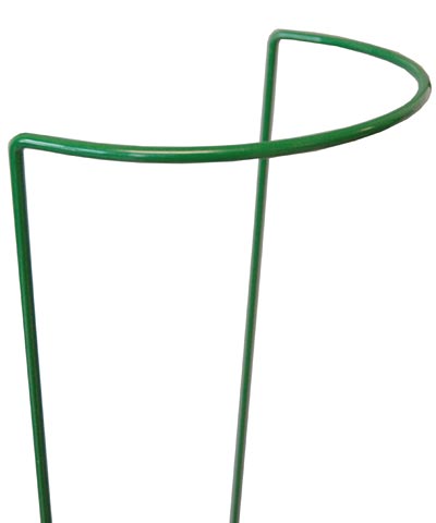 Brace your plants and help them grow upward using the Gardman Semi-Round Plant Support. Placing a support next to your small flower or herb as it grows helps distribute its weight, directing the stem upward rather than outward for a healthy root system. The 8" diameter, top semicircle on this unit surrounds half of a flower or small shrub, and its two, 23.75" long legs insert into soil. The plastic coated steel adds durability to the piece, while the item's green color meshes with your plants. Use two of these supports to surround a plant, or several in a row to create a border. Help your flowers grow upward and strong with this Semi-Round Plant Support.