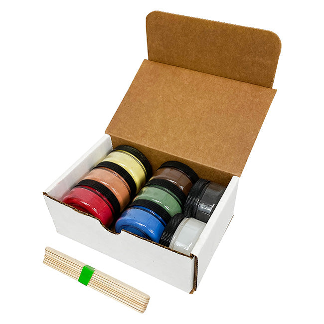 Package Contents: 8 jars milk paint pigments, stirring sticks per box