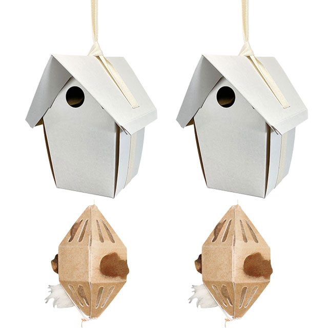 - Unassembled wren houses and nesting material holders let you create an eco-friendly birding spot.