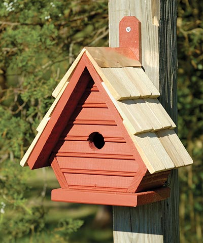 Offer wrens, chickadees, and other songbirds a stylish new home in your backyard by mounting the Heartwood New Chick Chickadee House. Heartwood's classic cypress shingles and copper ridge cap perfectly complement the subtle color of the house and the durable cypress construction will last for years. A 1.125" diameter entrance hole leads to a single cavity perfect for your smaller songbirds. Proper ventilation and drainage help make this house the ideal haven for your birds. A copper cleanout panel on the back of the house makes seasonal cleanouts quick and convenient. This house may be post mounted. Handcrafted in the USA.
