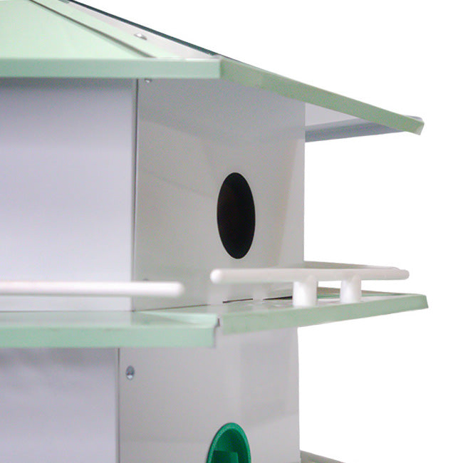 Provide martins two types of housing in your backyard using the Heath 24-Room Deluxe Purple Martin House and Gourds Kit. This comprehensive package helps a martin colony thrive in your backyard, offering them both of their favorite types of shelter. Once you have assembled the included Heath Aluminum 24-Room Deluxe Martin House, place it on the included B.E.S.T. Martin House Pole, 16', by Prime Retreat for fantastic height. The aluminum house and steel pole combination creates a comfortable and durable roost for your feathered friends. To encourage colony growth, attach the three included Heath Single Two-Piece Martin Gourds to the base of the home using hooks or wire (not included). This allows you to enjoy both traditional and gourd housing simultaneously. Place the two included Heath Deluxe Purple Martin Decoys on the porch rails or in a gourd to better attract birds to the area. Have a successful and thriving martin colony in your backyard with this Heath 24-Room Deluxe Purple Martin House and Gourds Kit.