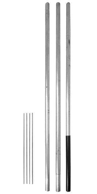 Package Contents: 3 pole sections, 4 hanging rods, 1 ground socket, and hardware