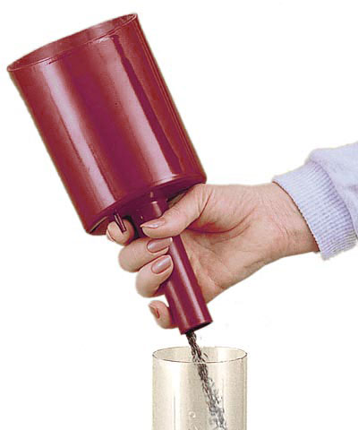- Narrow end also acts as a handle, making easy work of both scooping and filling
