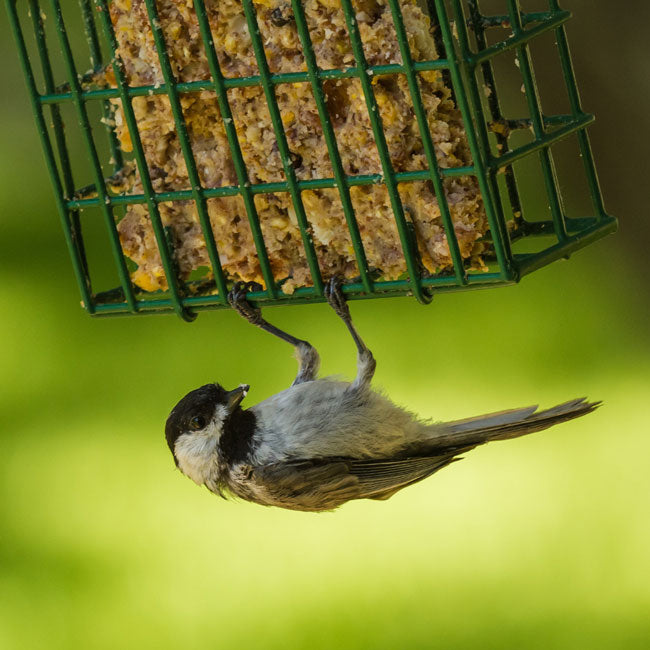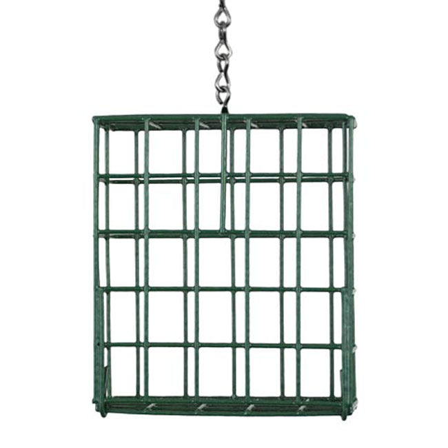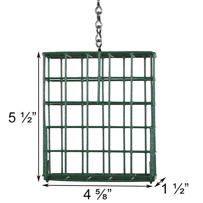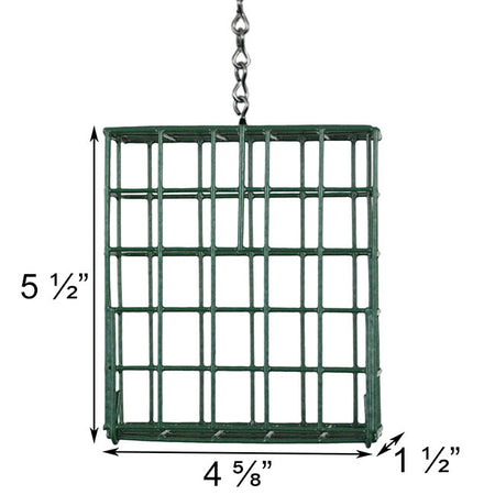 - Green, vinyl coated wires create a 1" x 0.875" rectangular grid for birds to feed readily