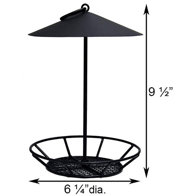 - Each feeder has a center, steel rod that threads into its 6.25" diameter base and matching, pitched roof