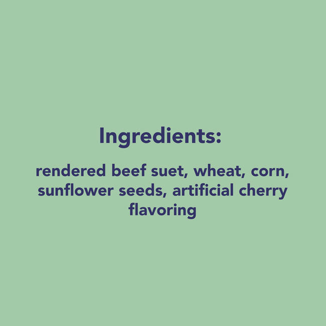 - Sunflower seeds, corn, wheat, and cherry flavoring within the fat add flavor.