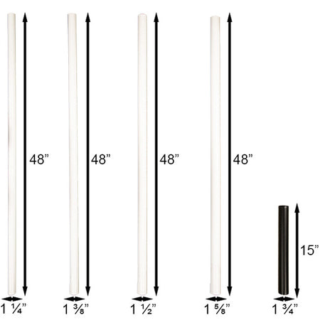 Dimensions: 15'H overall, 1.25" top outer diameter, 0.375" dia. x 20"L gourd rods