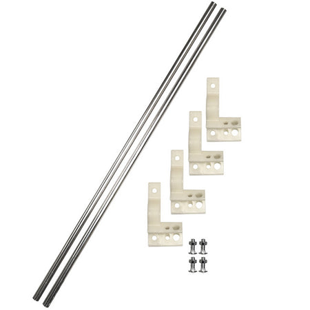 - Two included, plastic brackets may be secured around each pole, and these brackets support a 20" long, metal rod for hanging gourds (not included).