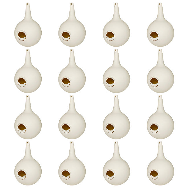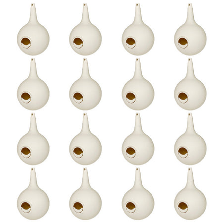 Note: This package contains 16 Heath Two-Piece Martin Gourds with Crescent Starling Resistant Entrance Holes.