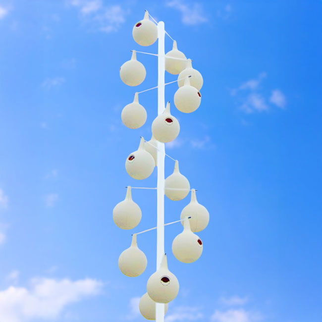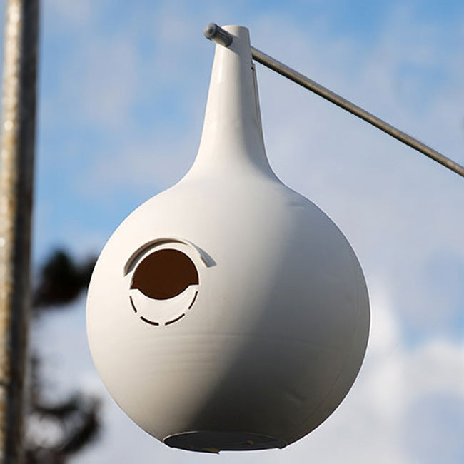 Add timeless roosting sites to your martin colony with these Heath Crescent Starling Resistant Entrance Hole Two-Piece Martin Gourds. These birds have been recorded nesting in natural gourds for centuries, and this package continues that fantastic tradition. The 2 pieces of these molded, plastic gourds interlock, and an included screw at the top keeps them connected. This forms a 7" diameter nesting cavity, which the birds can access via the 2.125" long and 1.375" tall, crescent shaped opening. This design discourages starlings from using the nests, as they tend to prefer a round opening. A molded canopy above the entry keeps rain away from the cavity, and small gaps along the interlocking base provide drainage. The tall neck directs warm air upward, away from fledglings, and the ivory color remains cool through the hot summer months. Run a perching rod through the molded hole at the top of each unit, for easy placement on a gourd rack. If starlings are not present in your area, the bottom of each entry can be removed to form 2.125" diameter, round openings for a different look. This bundle of 16, molded plastic units creates classic housing options for several of these communal birds, and their straightforward design makes assembly simple. Increase the size of your martin colony by placing these Crescent Starling Resistant Entrance Hole Two-Piece Martin Gourds in your lawn. Assembly required. Made in the USA.