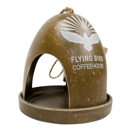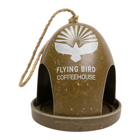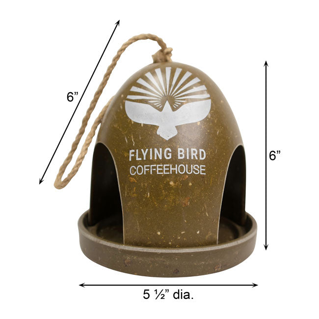 - Striking image of a bird with the words "Flying Bird Coffeehouse" appears on feeder front