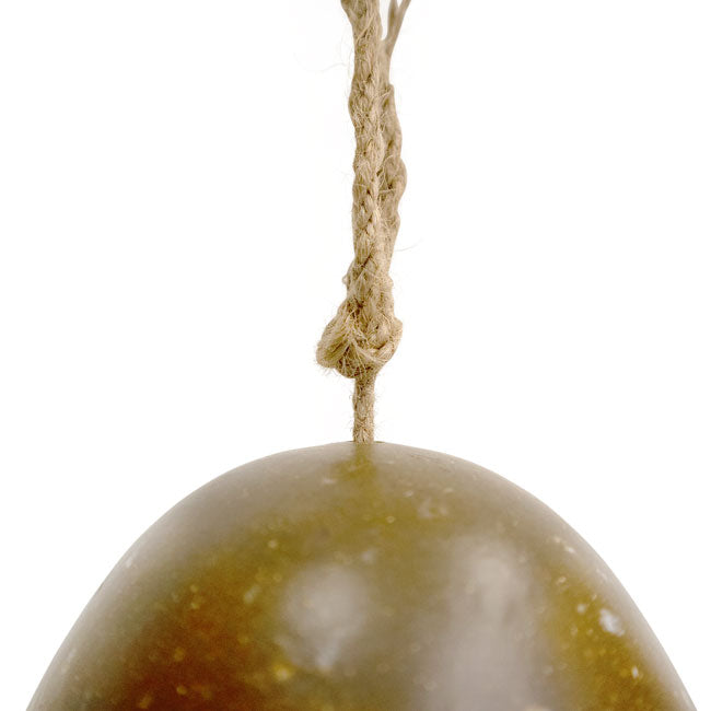 - Twine atop the coffee-bean shaped item allows for easy hanging from a branch or hook