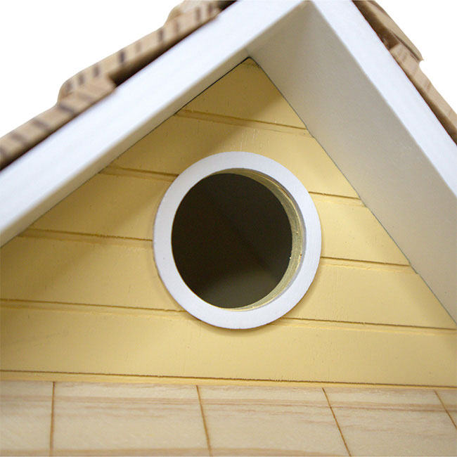 - A 1.25" entry hole rests below the roof peak, enabling small birds to enter the nesting chamber
