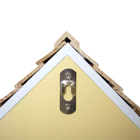 - Metal, keyhole hanger on the back makes it easy to affix the home to a wall or post