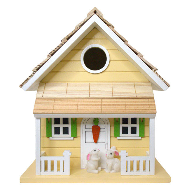 Let your love of pastels and springtime animals leap into view when you place this Home Bazaar Yellow Bunny House Bird House in your yard.