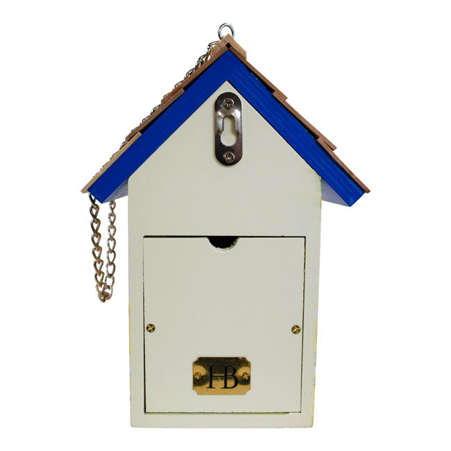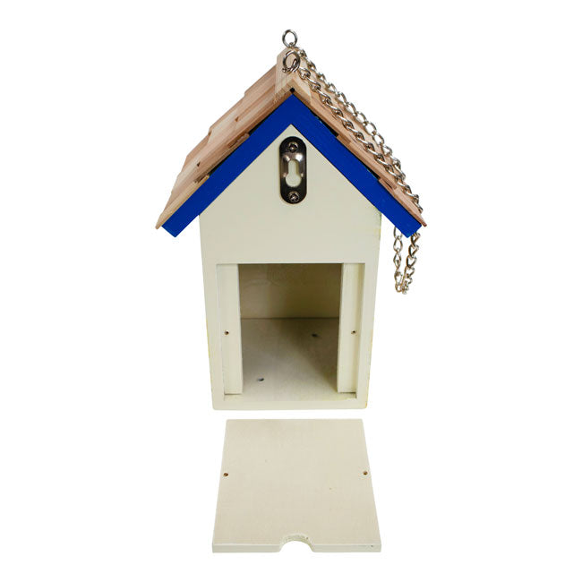 - Blue trim around the 1.375" diameter entry hole and beneath the roof line further enhance the colorful design
