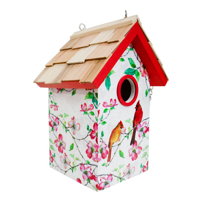 Home Bazaar Cottage Bird House, Cardinals & Dogwood